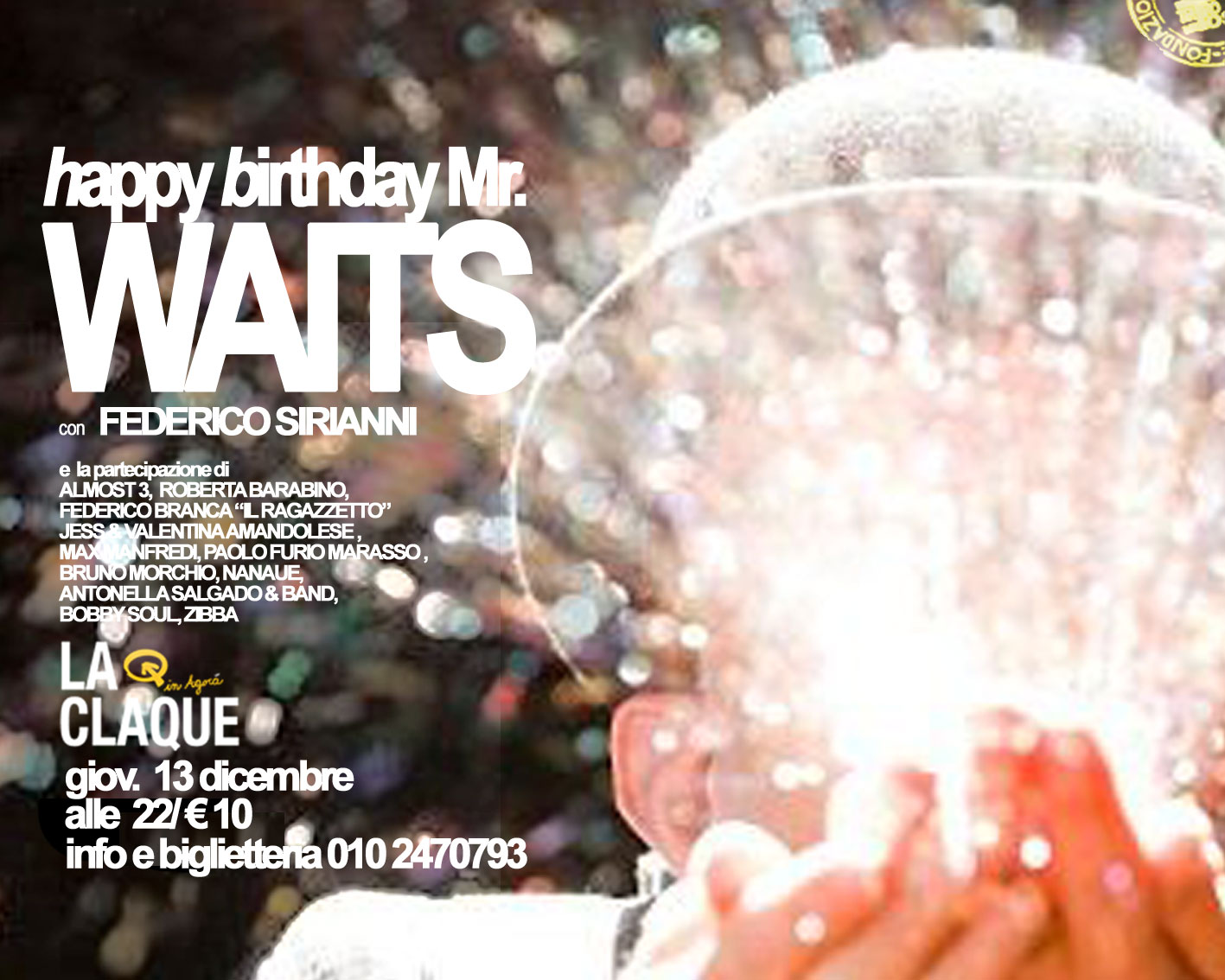 Lo scorso 7 dicembre Tom Waits ha compiuto 63 anni. Questa sera, con qualche giorno di ritardo, va in scena al Teatro La Claque di Genova una singolare festa di compleanno dedicata al grande cantautore americano intitolata "Happy Birthday Mr. Waits".